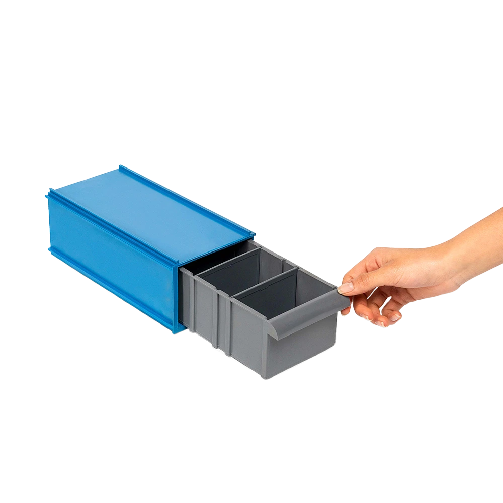Organiza eficientemente y ahorra espacio. La puedes modular de forma horizontal y vertical. Set de 25 unidades de gavetas cerradas plásticas modulares. Incluye:
