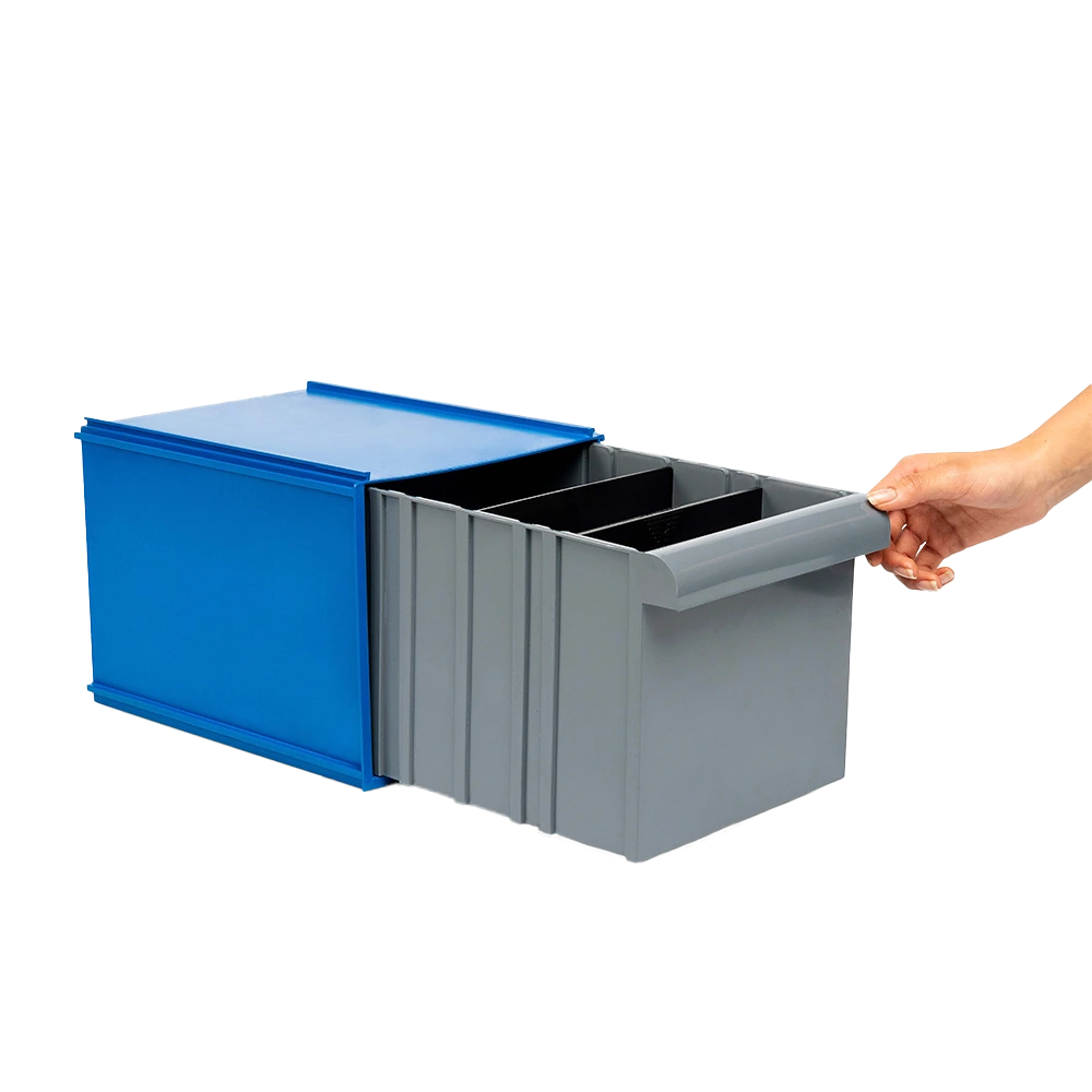 Organiza eficientemente y ahorra espacio. La puedes modular de forma horizontal y vertical. Set de 9 unidades de gavetas plásticas modulares. Incluye: